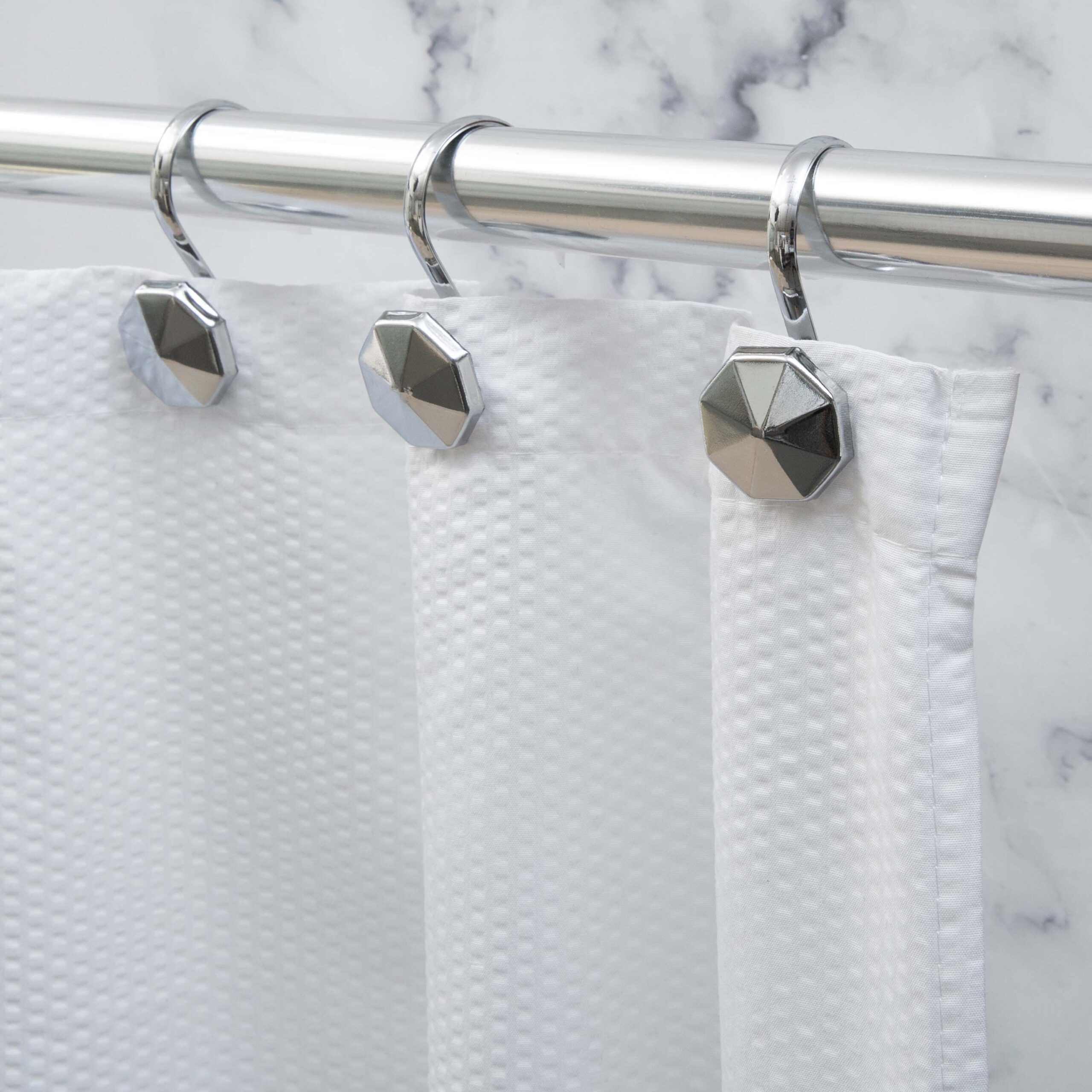 ALTA Shower Hook: Elegantly designed octagonal shower hooks, perfect for enhancing your bathroom decor. Crafted with meticulous attention to detail, these hooks come in a pack of 12 and are available in sleek black, adding a touch of sophistication to your shower curtains while ensuring durability and effortless installation.