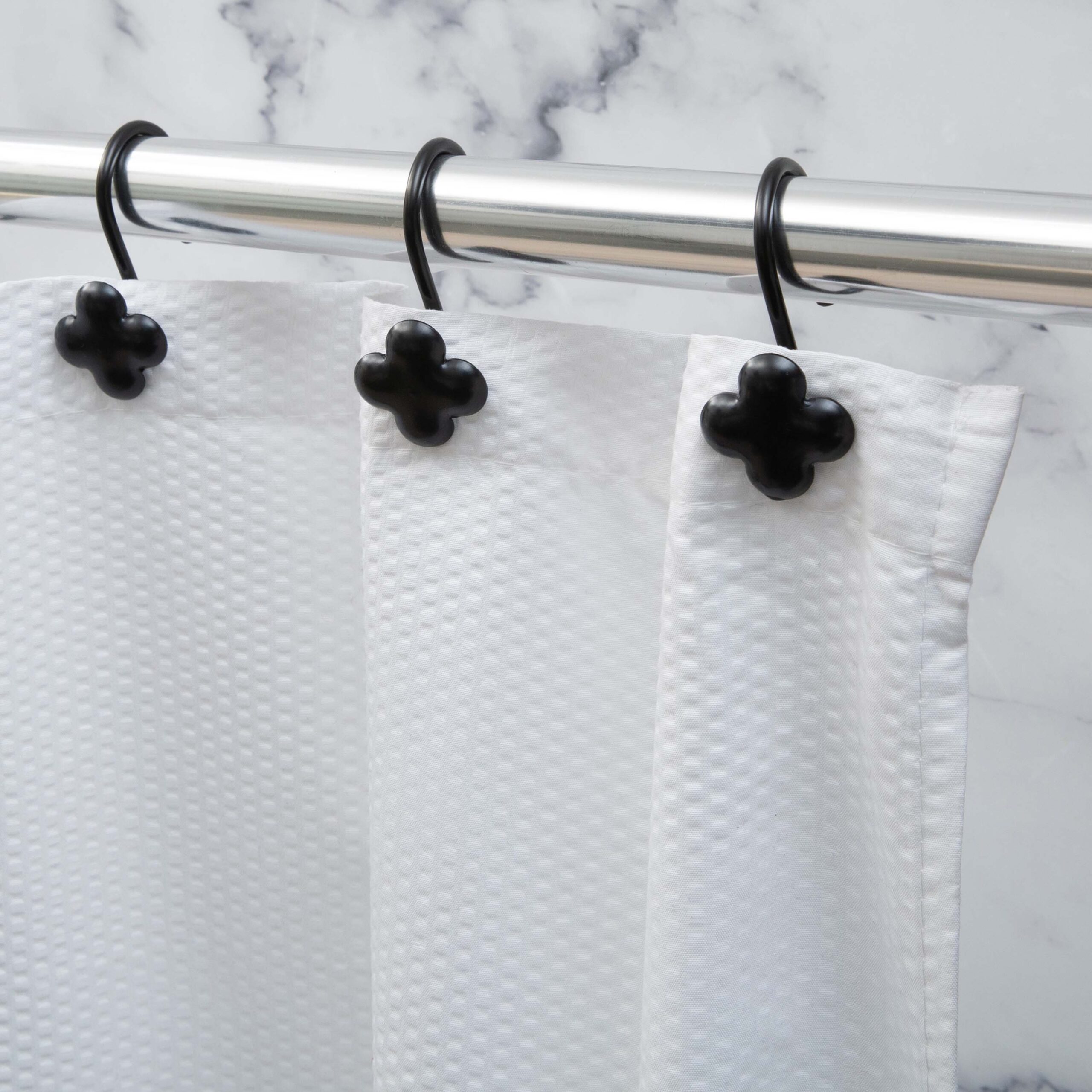 Introducing TRAVERSE, the perfect shower hook for a classic yet unique style. Its rounded cross-like design adds a charming appeal. Sold in packs of 12, available in black. Elevate your bathroom decor with these delightful hooks that offer a fresh take on the traditional look.